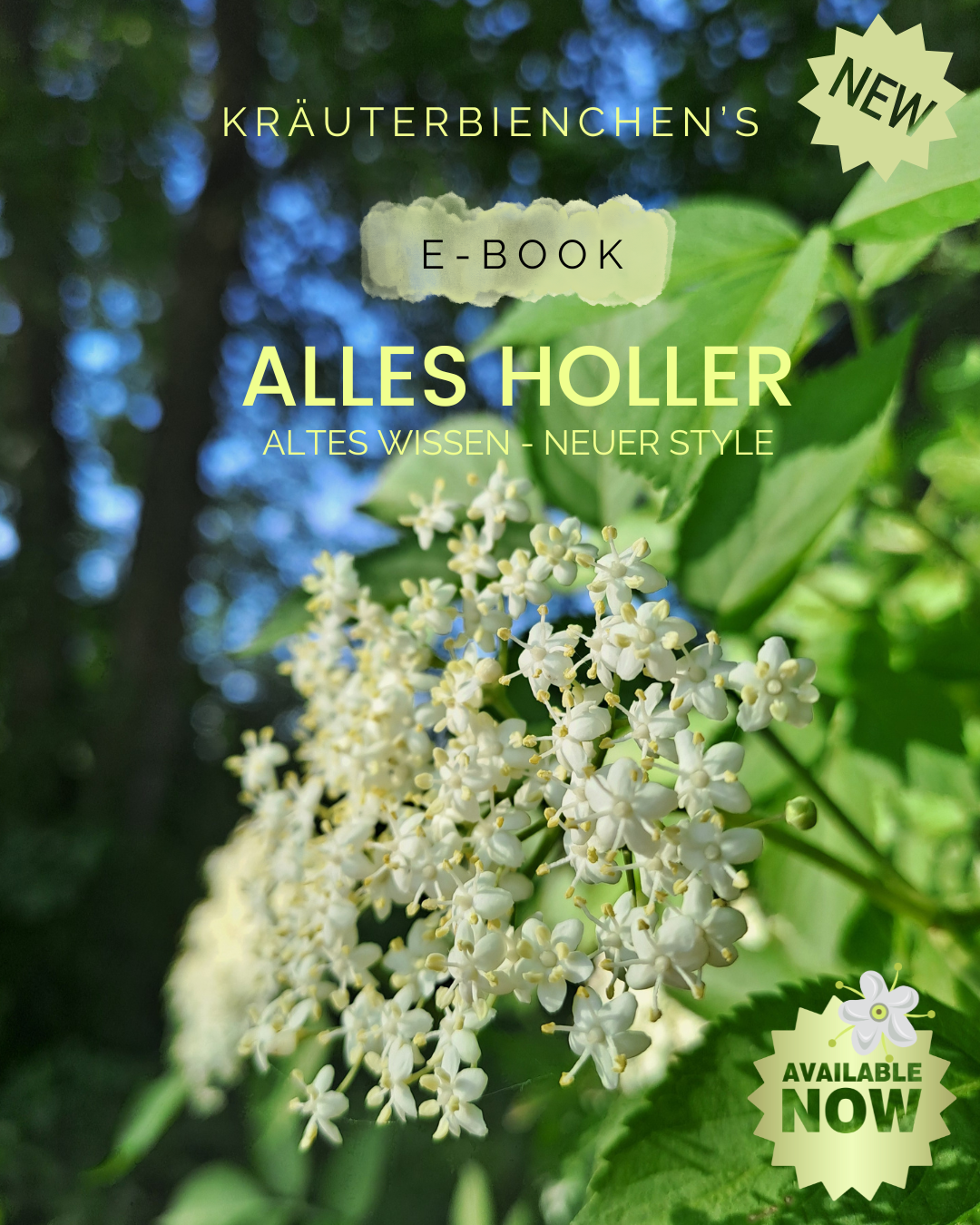 Es ist da – mein erstes E-Book! Die Holunderzeit ist da und zeitgleich auch mein erstes umfangreiches E-Book „Alles Holler“, wo es natürlich, wie soll es anders sein, um meine Lieblingspflanze den Holunder in all seinen Facetten geht. Nicht nur die weißen Blüten im Frühling oder die violett-schwarzen Beeren im Herbst, sondern so viel mehr hat der Holunder zu bieten. Du bekommst: 👉 ein 60 seitiges E-Book vom Kräuterbienchen👉 33 erprobte Rezepte mit farbigen Abbildungen👉 Kompaktes und altes Wissen rund um den Holunder im neuen Style👉 Umfangreiche Collection an Rezepten für Gaumen, Naturapotheke und für die Seele👉 Sammeltipps, Verwechslungsmöglichkeiten, Wirkungsweise, etc. vom Holunder👉 meine Begegnung mit dem Holunder👉 Inhalt, Layout…