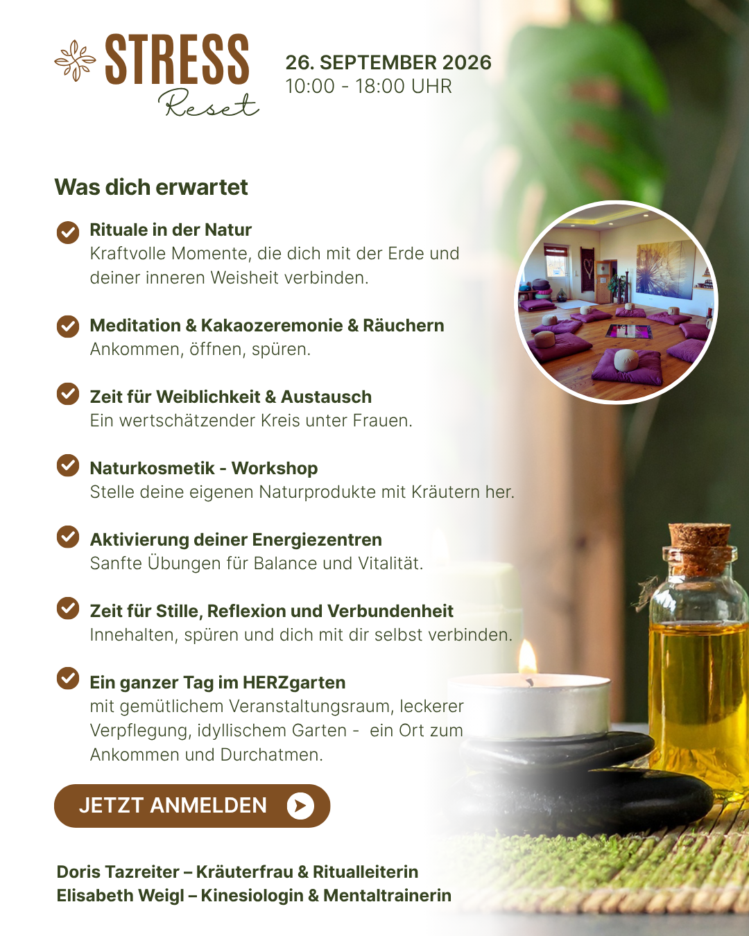 Beim STRESS Reset – Selfcare-Retreat für Frauen erwartet dich eine wohltuende Auszeit für Körper, Geist & Seele: