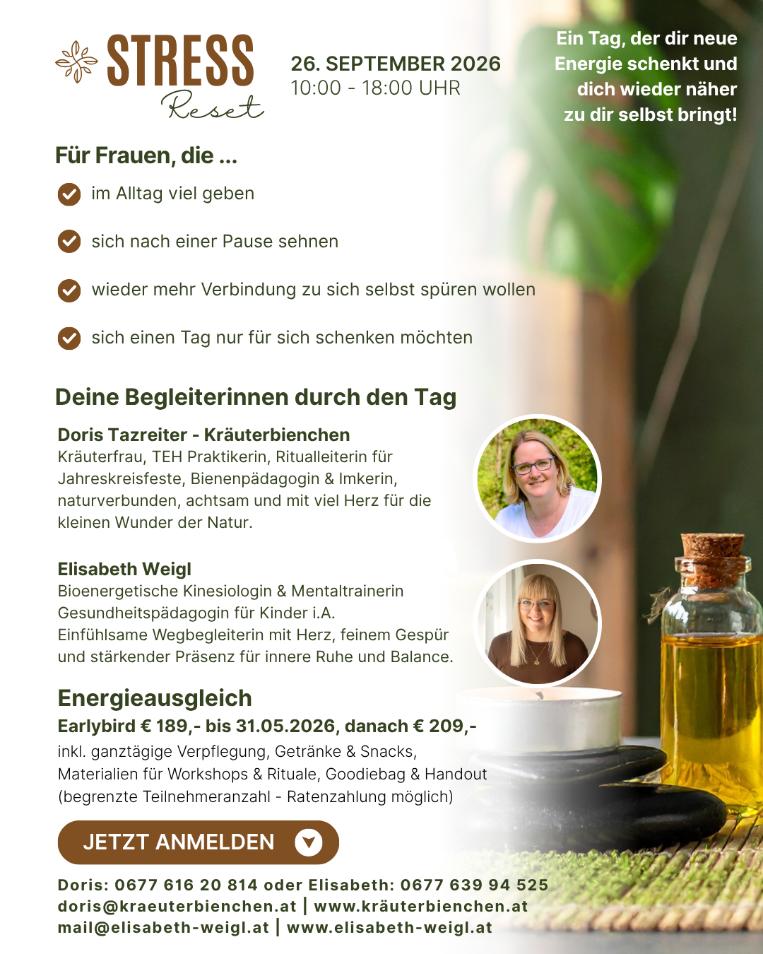 Retreat inkl. ganztägige Verpflegung, Getränke, Snacks, materialien für Workshops & Rituale, Goodiebag & Handout